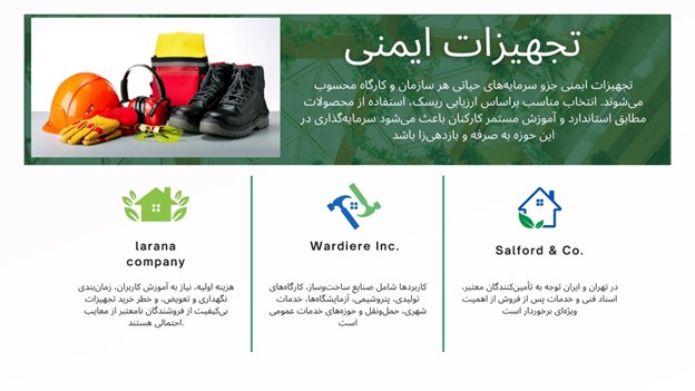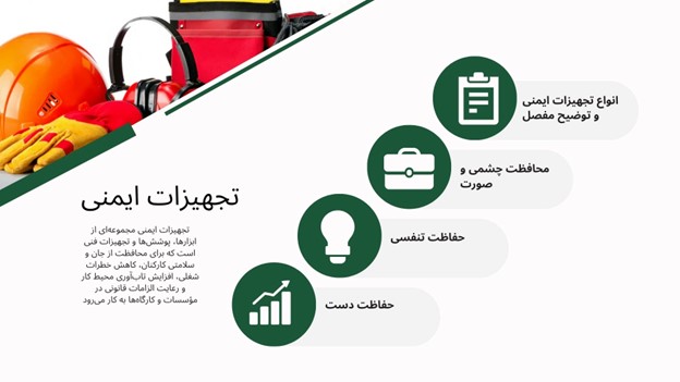 - لباسهای کار مقاوم: محافظت از بدن در برابر خطرات محیطی.